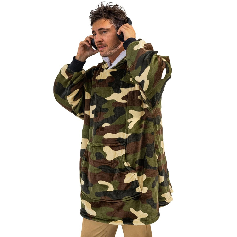 The Big Softy Oversized Blanket Hoodie Men - Graphic Print Football Sherpa Hooded Blanket Oversized Black Hoodie Football Gift for Men (Adult Camou