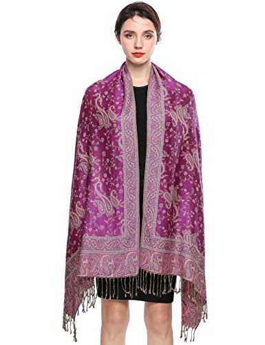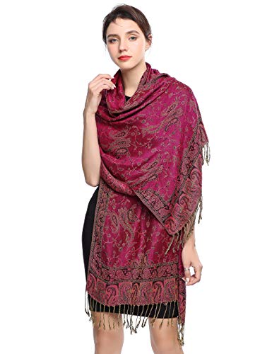 Women Pashmina Scarves Oversized Winter Scarf Reversible Paisley Shawl for Ladies Blanket Large Wraps 78.5"X27.5"/(10-Red purple)