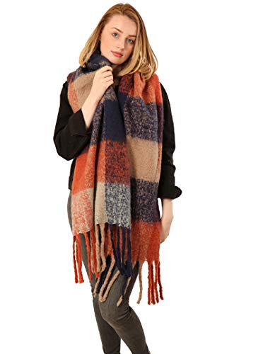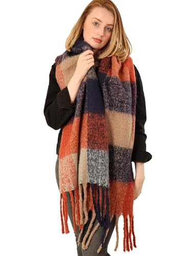 Style Slice Women Ladies Blanket Scarf Oversized Tartan Scarves Scottish Blanket Shawl Women Winter Wraps Pink Grey Black Mustard Red (Navy Blue & Orange)
