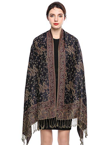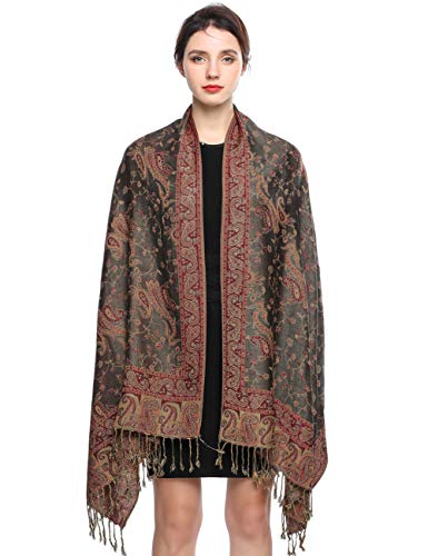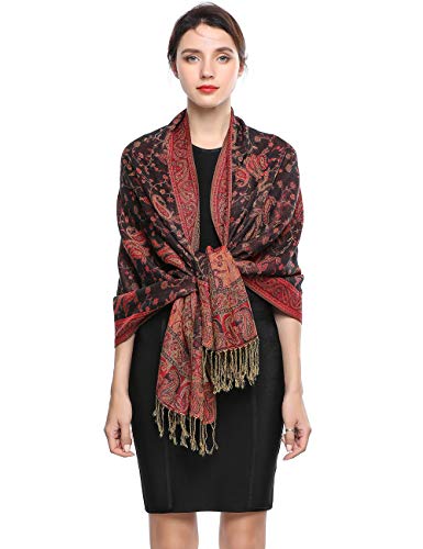 EASE LEAP Women Pashmina Scarves Oversized Silky Winter Scarf Reversible Paisley Shawl for Ladies Blanket Large Wraps 78.5"X27.5"/(5-Black red)