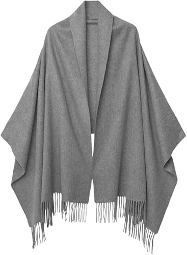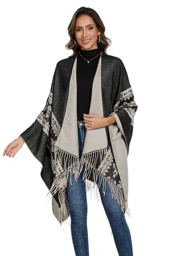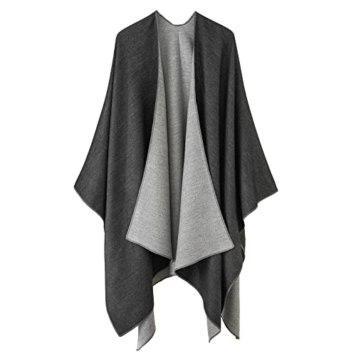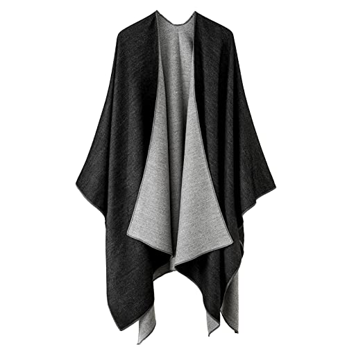 Shawl Wraps for Women, Soft Open Front Poncho Cape Cardigan, Oversized Scarf Sweater for Evening, Wedding, Party, Travel, Black Grey