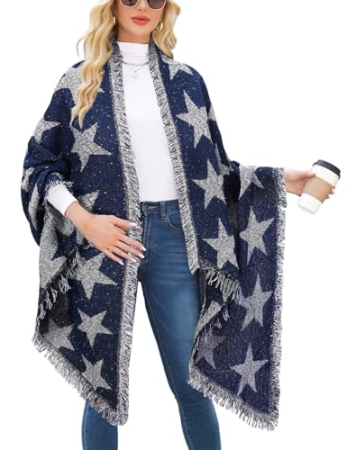 heekpek Women Large Oversized Scarf Pashmina Wrap Poncho Thick Style Scarf Patchwork Cape Shawl (Star-navy)(Size: One Size)