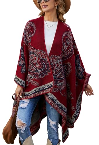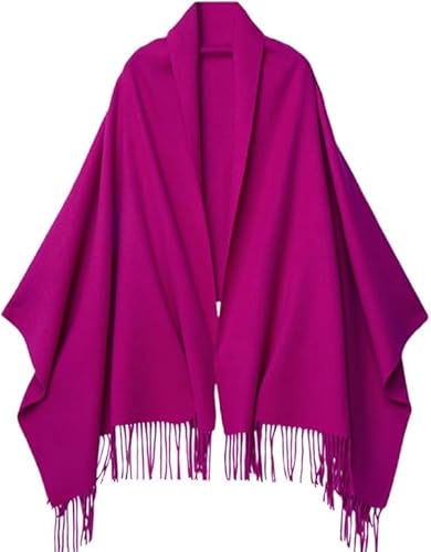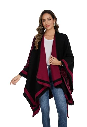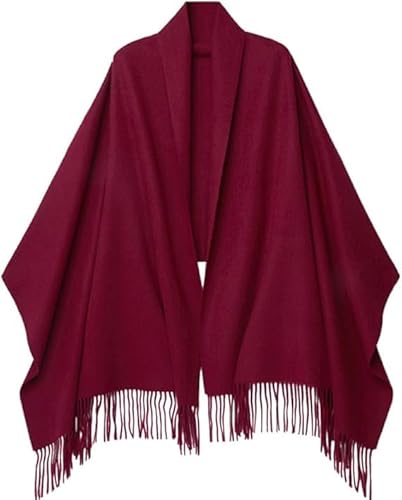 heekpek Women Large Oversized Scarf Pashmina Wrap Poncho Thick Style Scarf Patchwork Cape Shawl (Z-Wine Red)(Size: One Size)