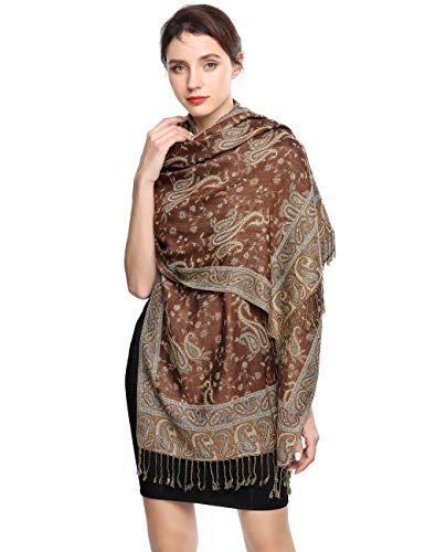 EASE LEAP Women Pashmina Scarves Oversized Silky Winter Scarf Reversible Paisley Shawl for Ladies Blanket Large Wraps 78.5"X27.5"/(9-Dark Coffee)