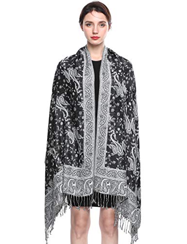 EASE LEAP Women Pashmina Scarves Oversized Silky Winter Scarf Reversible Paisley Shawl for Ladies Blanket Large Wraps 78.5"X27.5"/(24-Black & white)