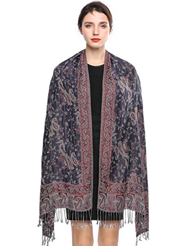 EASE LEAP Women Pashmina Scarves Oversized Silky Winter Scarf Reversible Paisley Shawl for Ladies Blanket Large Wraps 78.5"X27.5"/(25-Navy-red)