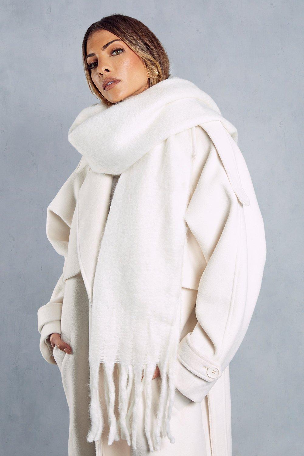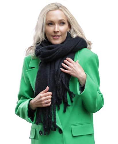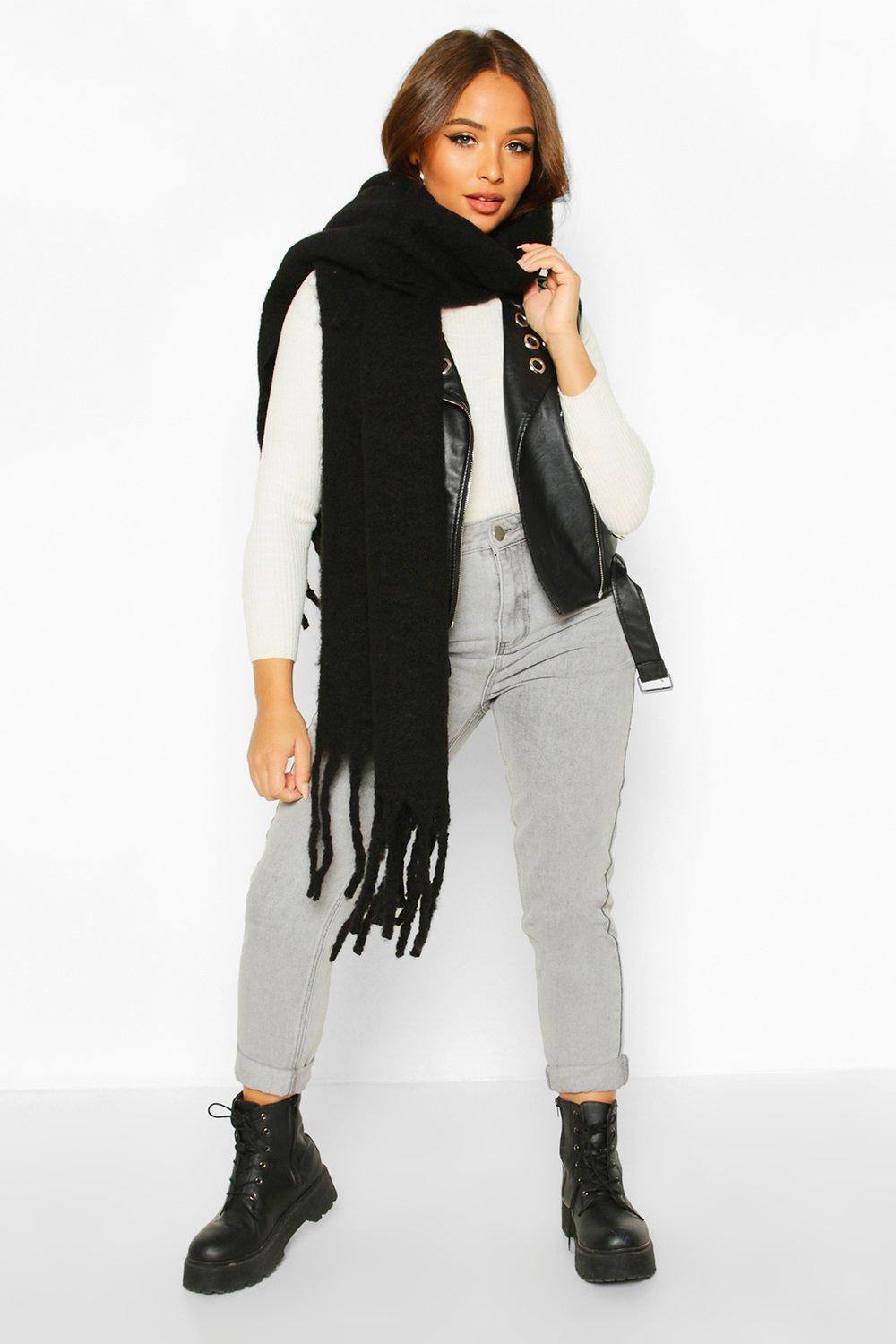 Womens Chunky Oversized Fringe Scarf - Black - One Size, Black