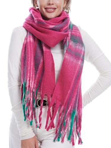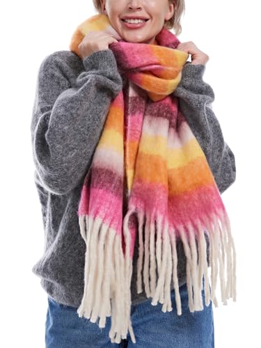Style Slice Blanket Scarf Women Ladies Scarves Oversized Scarf Tartan Scottish Blanket Shawl Winter Wraps Scarves Women Winter Scarfs Women, Pink Rainbow
