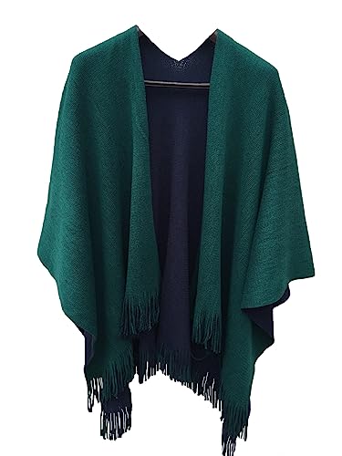 Womens Reversible Knitted Poncho Cape Oversized Christmas Scarf Blanket Shawl Wrap, Green, L