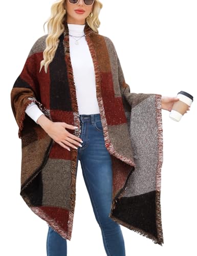 colornival Poncho for Women Shawls Wraps Oversized Winter Scarf Women's Knitted Cape Warm Wearable Blanket Long Cardigans Sweater Coats Christmas Birthday Gifts for Ladies