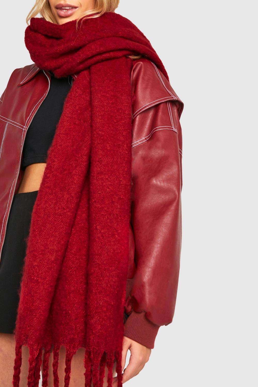 Womens Chunky Oversized Fringe Scarf - Red - One Size, Red