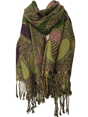 Purple Possum® Green Scarf Ladies Pashmina Wrap Oversized Scarf Aubergine Lime Floral Pattern Wedding Prom Shawl