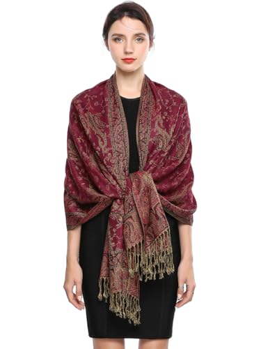 EASE LEAP Women Pashmina Scarves Oversized Silky Winter Scarf Reversible Paisley Shawl for Ladies Blanket Large Wraps 78.5"X27.5"/(2- Date red)