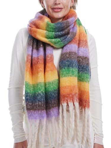 Style Slice Blanket Scarf Women Ladies Scarves Oversized Scarf Tartan Scottish Blanket Shawl Winter Wraps Scarves Women Winter Scarfs Women, Rainbow