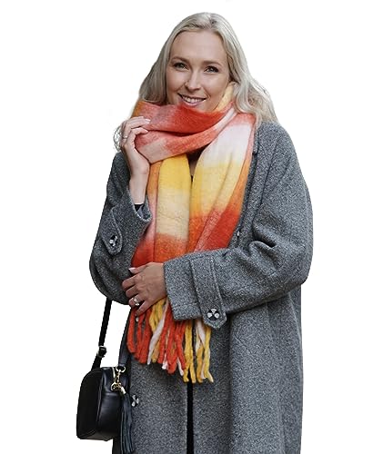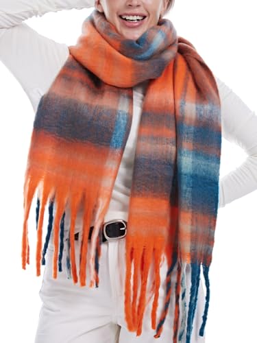 Style Slice Women's Scarves, Ladies Oversized Winter Scarf for Women Uk Scottish Blanket Shawl Tartan Wraps Scarfs Women, Orange
