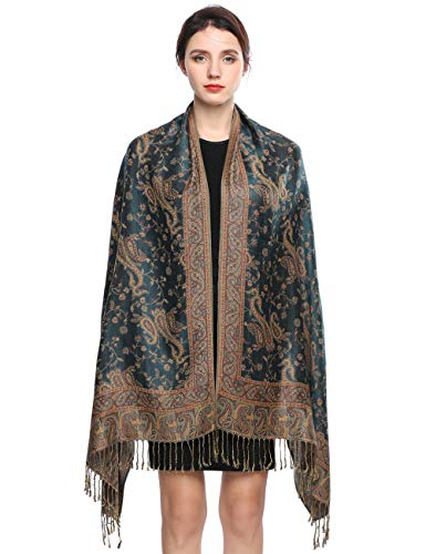 EASE LEAP Women Pashmina Scarves Oversized Silky Winter Scarf Reversible Paisley Shawl for Ladies Blanket Large Wraps 78.5"X27.5"/(21-Dark green)