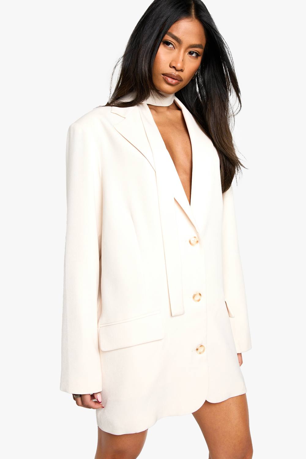 Womens Tailored Oversized Boxy Fit Scarf Detail Blazer Dress - White - 8, White