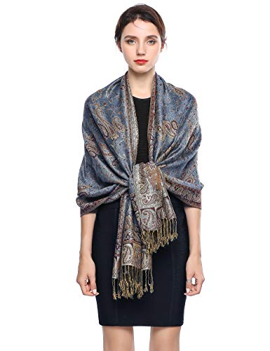 EASE LEAP Women Pashmina Scarves Oversized Luxury Winter Scarf Reversible Paisley Shawl for Ladies Blanket Large Wraps 78.5"X27.5"/(14- Rank blue)