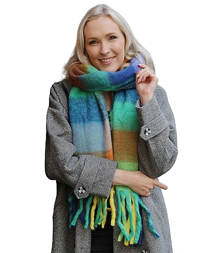 SHOHOKU Large Chunky Plaid Scarf Coloured Checked Oversized Scarf Tassel Soft Fall Winter Thick Warm Shawl Women, K, Medium