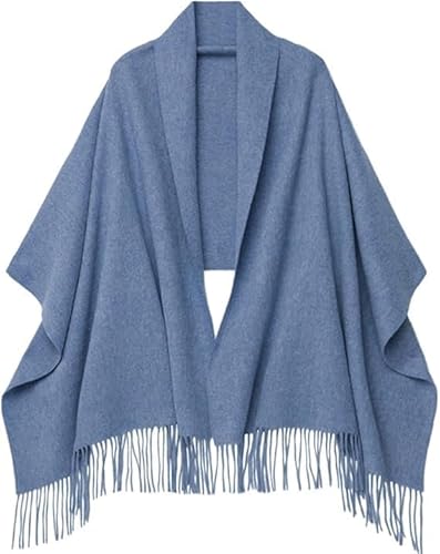 heekpek Women Large Oversized Scarf Pashmina Wrap Poncho Thick Style Scarf Patchwork Cape Shawl (Z-Navy)(Size: One Size)