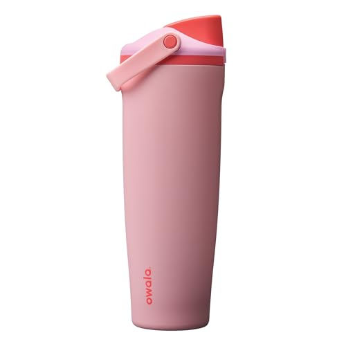 Owala FreeSip Sway Insulated Stainless Steel Water Bottle with Two-Way Spout, Built-In Straw and Bucket Handle, Made for Travel, School, and Sports, 890ml, BPA Free, Leak Proof, Angel Food Cake,(Pink)