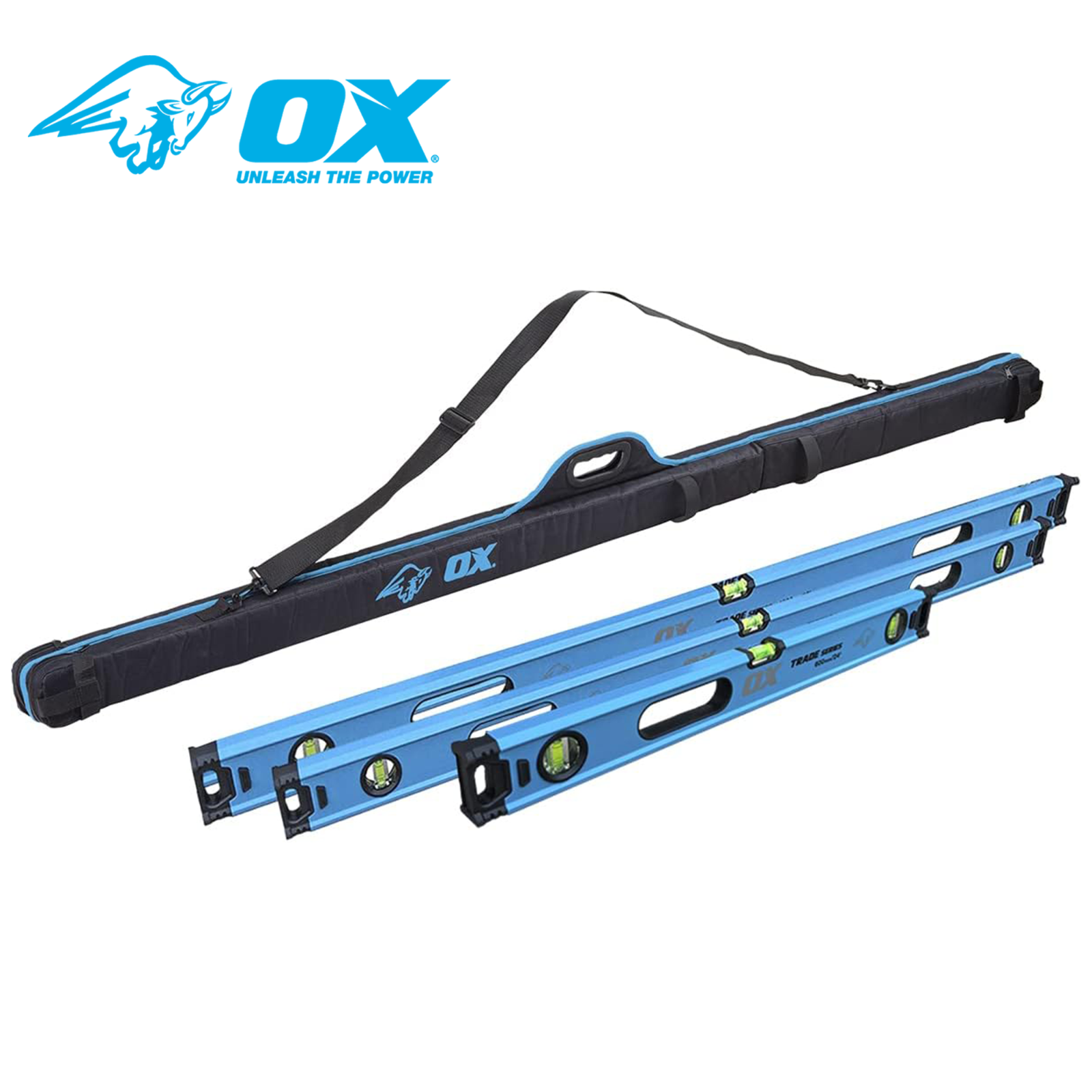 OX Pro Tuff Box Beam 4 Piece Level Pack 6ft 4ft 2ft + 6ft Ox Spirit Level Bag