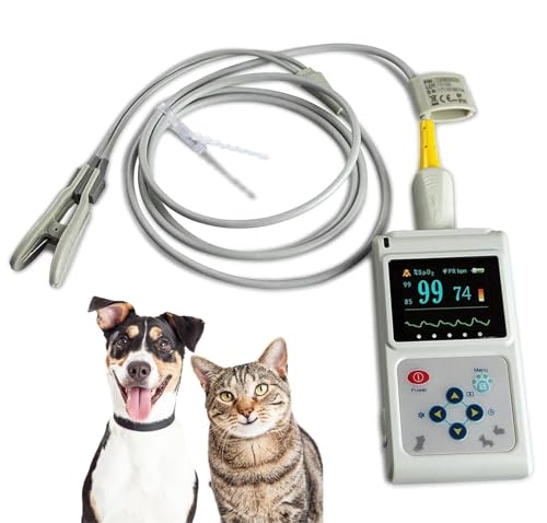 BDXZJ Handheld Vet Pulse Oximeter, Pulse Rate Monitor Ear Veterinary Pulse Oximeter Cat Dog SPO2 Pulse Rate Monitor Ear/Tongue SPO2 Sensor for Use in Family and Pet Hospital Etc
