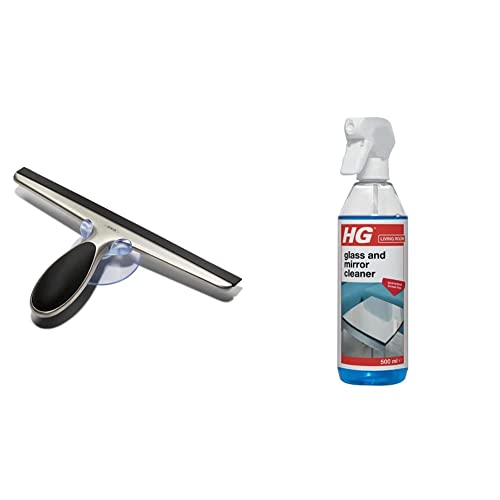 OXO Good Grips Stainless Steel Squeegee & HG Glass and Mirror Cleaner, Streak-Free Glass Cleaner, Effectively Removes Grease & Dirt from Windows & Surfaces Quickly (500ml) - 142050106