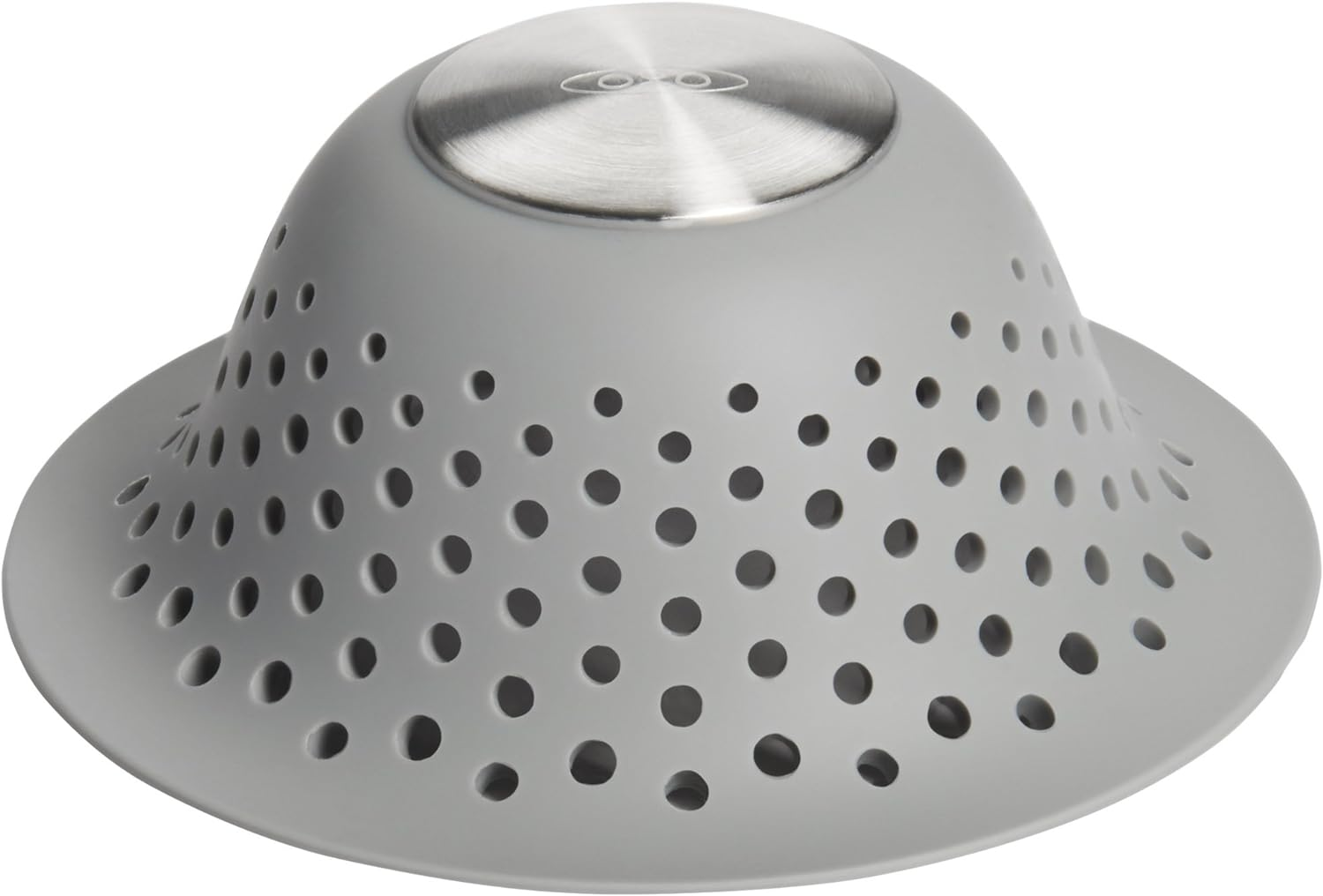 OXO Silicone Drain Protector, Grey, One Size & Good Grips Easy Clean Shower Stall Drain Protector - Stainless Steel & Silicone