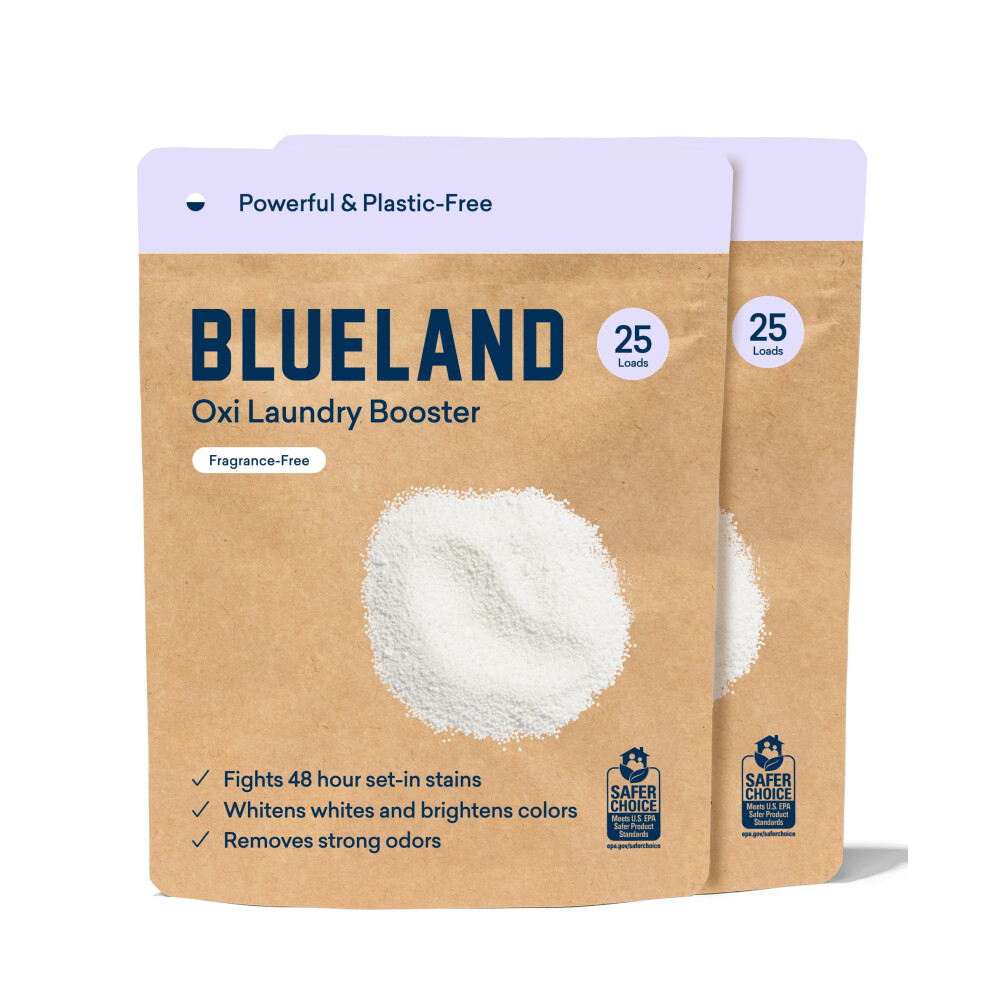 BLUELAND Oxi Laundry Booster Powder Refill 2-Pack Unscented 50 Loads 35.2 oz Plastic-Free Eco Friendly Oxy Cleaner Stain Remover