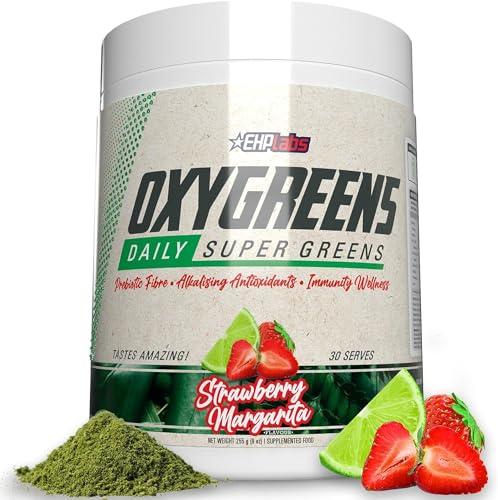 EHPlabs OxyGreens Daily Super Greens Powder - Spirulina Powder, Greens Superfood with Prebiotic Fibre, Alkalizing Antioxidants & Immunity Wellness, 30 Serves (Strawberry Margarita)