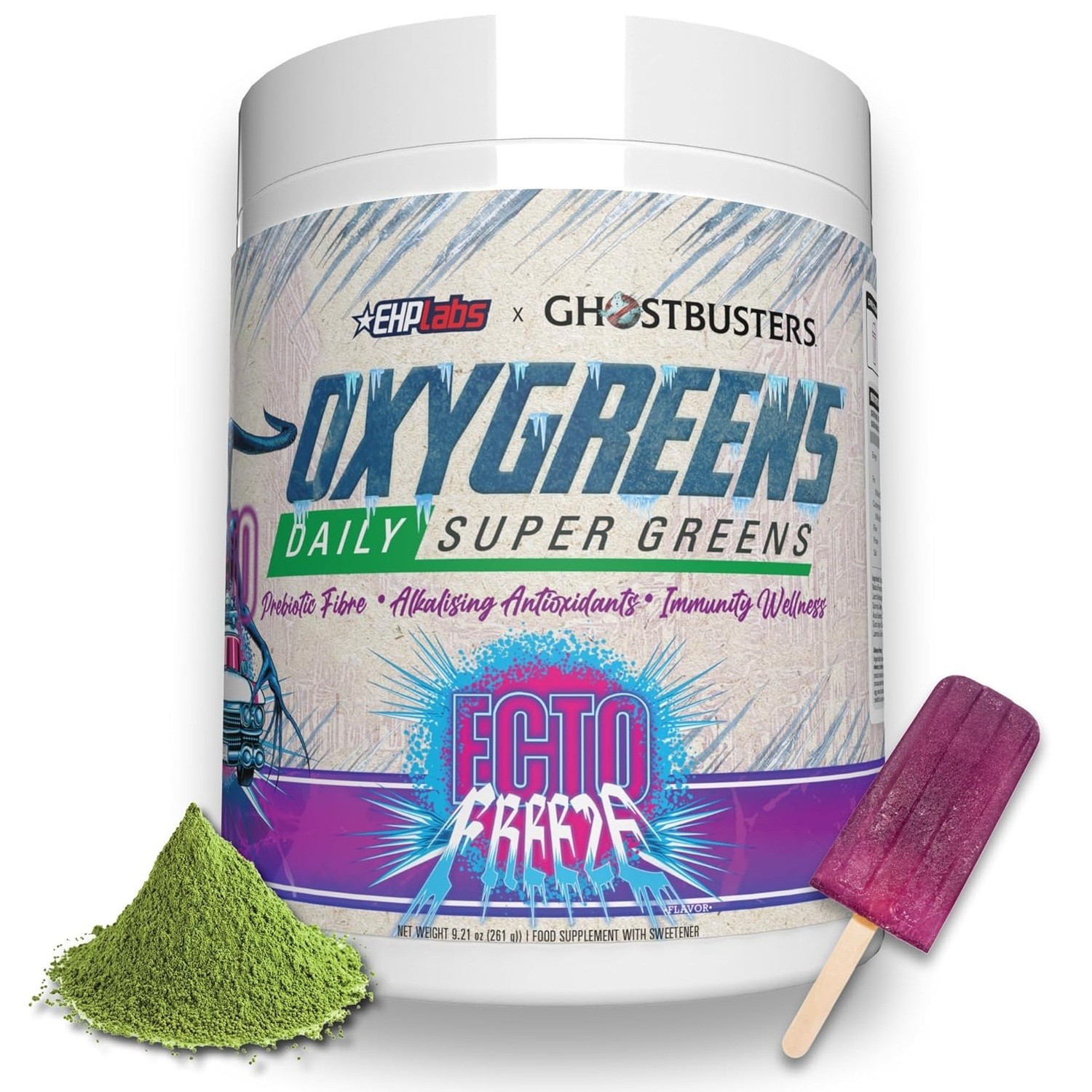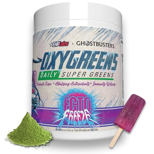 EHPlabs x Ghostbusters Frozen Empire: OxyGreens Super Greens Powder Superfood - Spirulina & Greens Supplement w/Prebiotic Fibre, Antioxidants & Immunity Support. Ecto Freeze (Grape Lollipop) 30 Serve