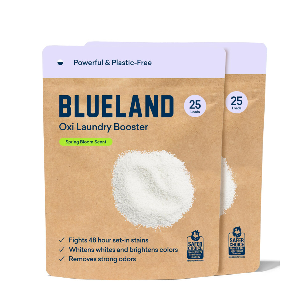 BLUELAND Oxi Laundry Booster Powder Refill 2-Pack Spring Bloom Scent 50 Loads 35.2 oz Plastic-Free Eco Friendly Oxy Cleaner Stain Remover