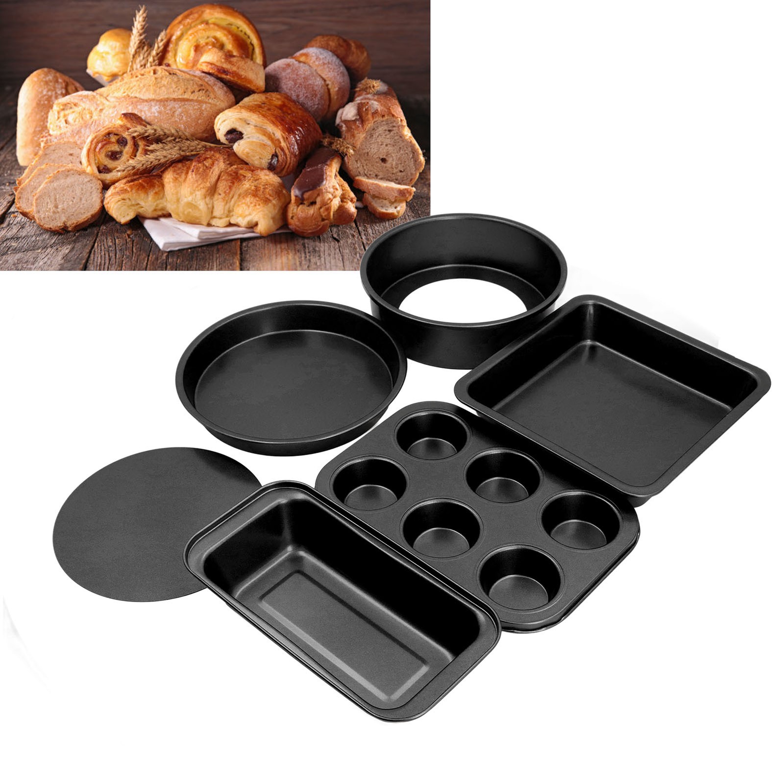 Black 6x Baking Mold Set Loose Bottom Anti Stick Carbon Steel Cake Pizza Bread P