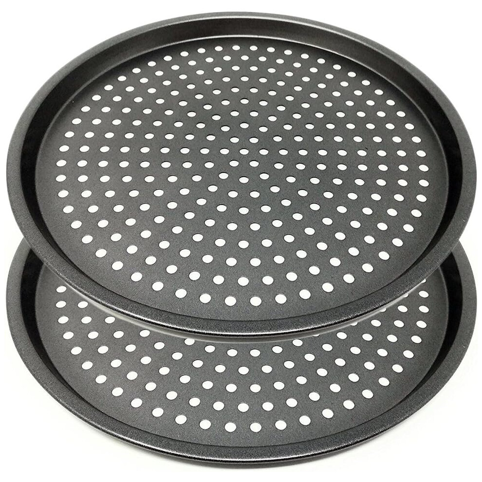 Dishwasher Safe Pizza Pans, Punching Design for Enhanced Air Circulation, Carbon Steel with Nonstick Coating, Professional Grade for Crispy Crust, 2 P