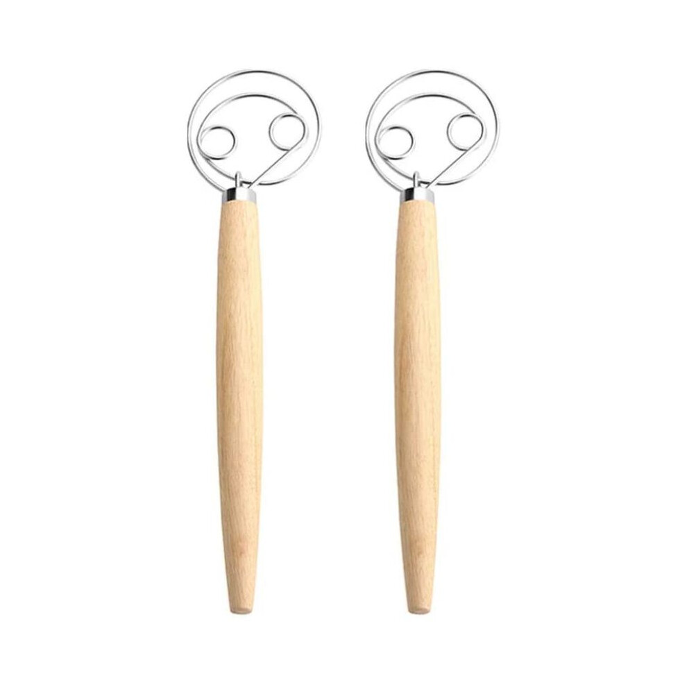 Dough Whisk Set, 2 Piece Danish Dough Mixers With Oak Handles, Stainless Steel Baking Tools For Mixing Dough Without Clumps, Ideal For Bread, Pizza, P