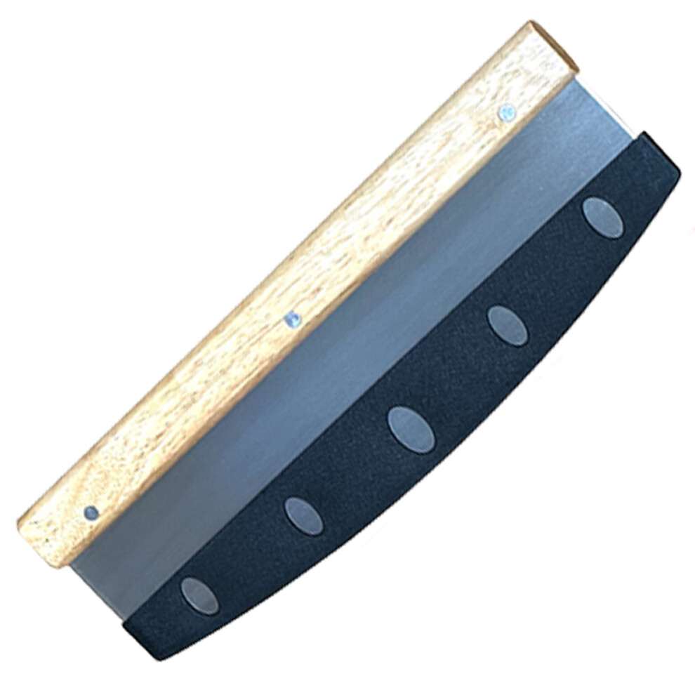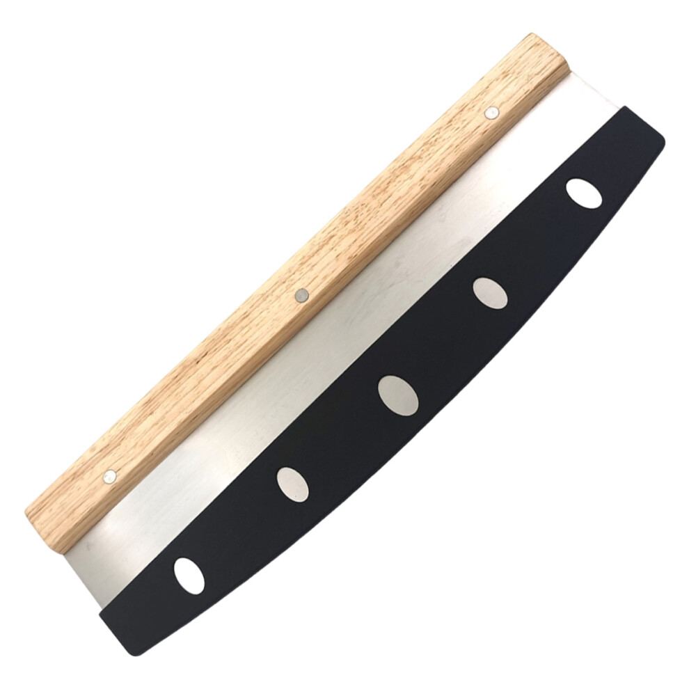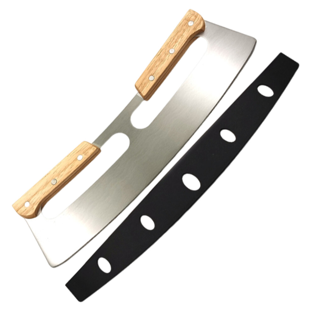 Kitchen Gadget with Curved Design Semicircle Face for Dual Handle Rocker Slicer Stainless Steel Pizza Cutter with Wooden Handle Ideal for Effortless P