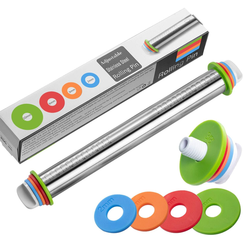 Innovative Dough Roller, Adjustable Rolling Pin for Baking with Nonstick Stainless Steel, Includes Pastry Mat, Suitable for Cookie Decorating, Pizza P
