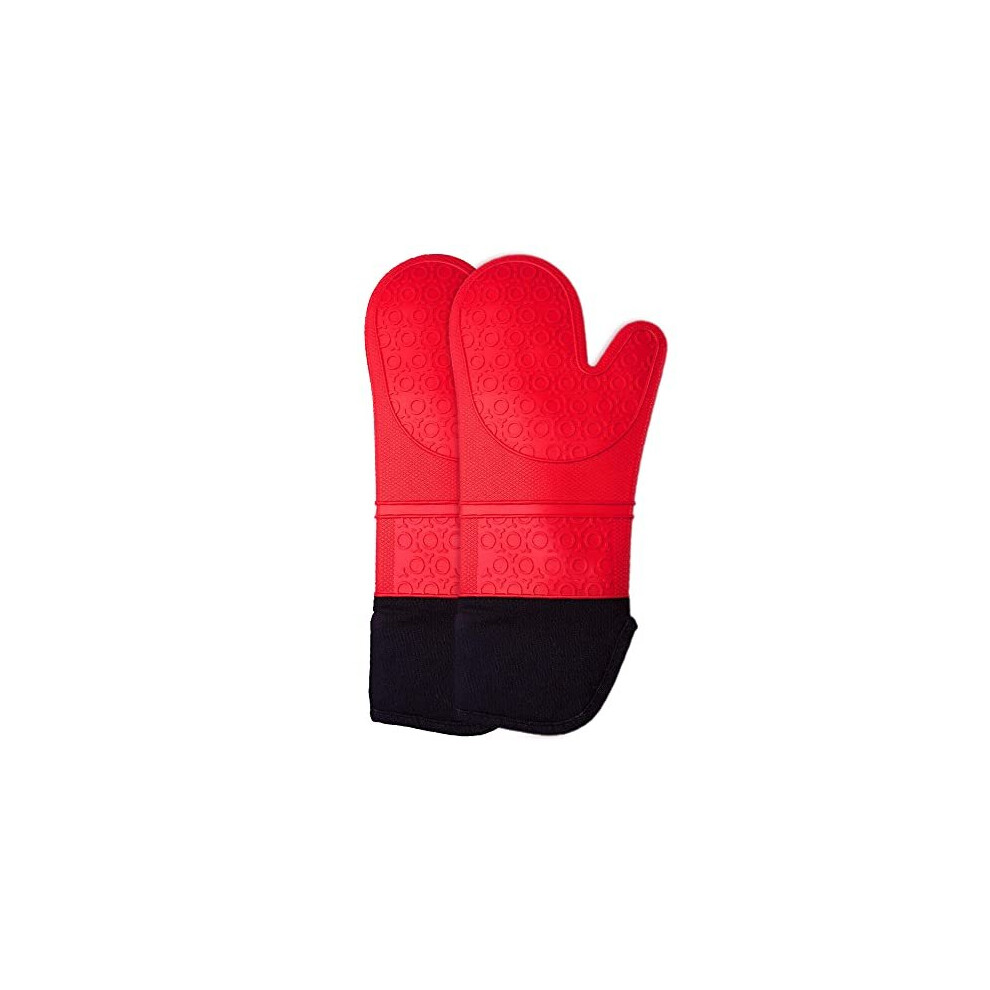 Oven Gloves, Heat Resistant Silicone Oven Gloves Extra Long Non-slip Oven Mitts for Grilling, Cooking, Baking, Kitchen, Microwave, Pizza (Red,1 P
