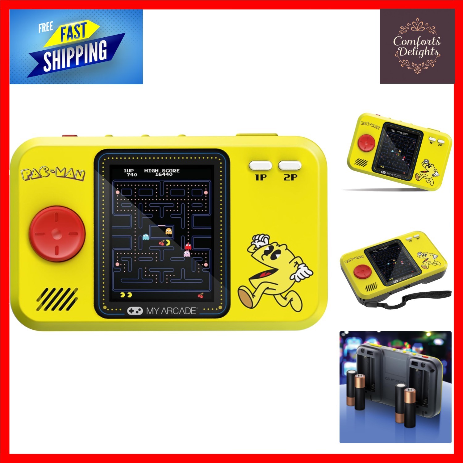 Retro PAC-MAN Handheld Console with High-Resolution LCD & USB-C Charging