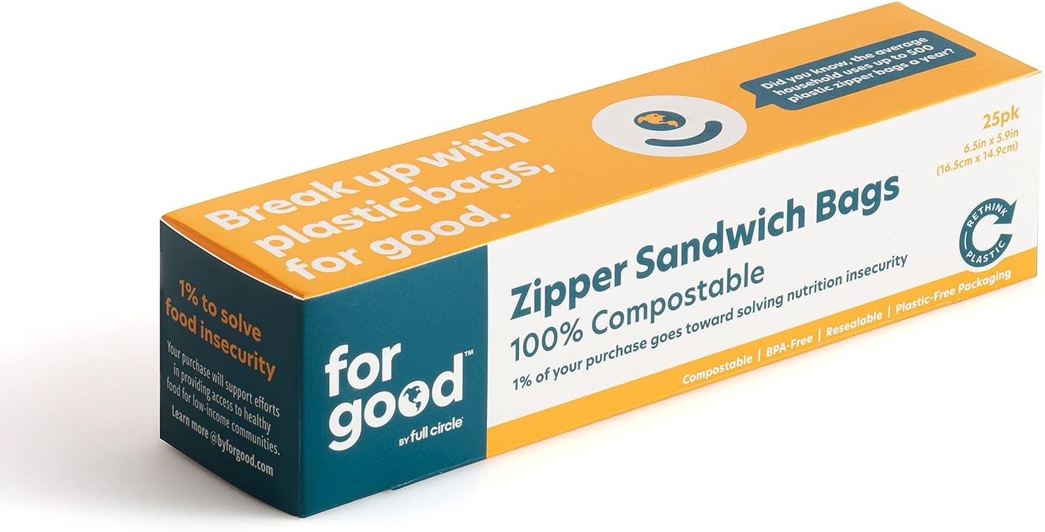 For Good 100% Compostable Zipper Sandwich Pack School Lunch Bags Pack Of 25