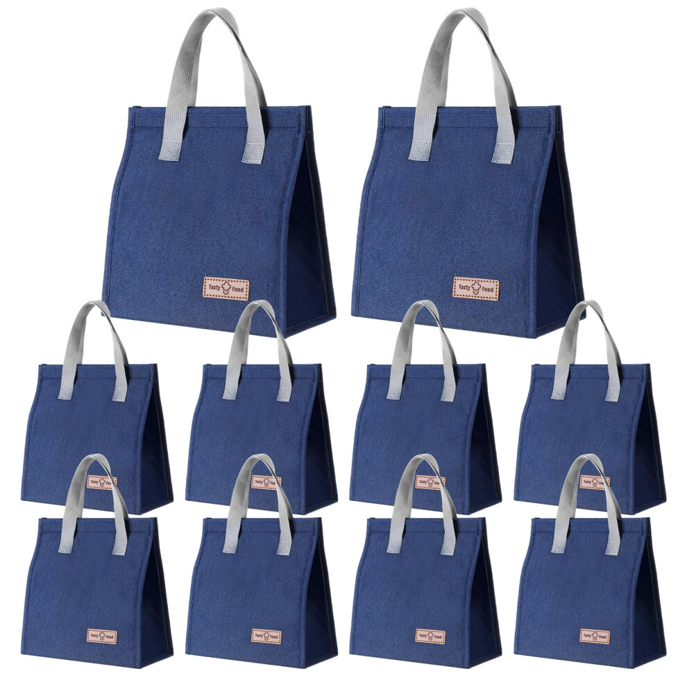 10Pack Insulated Lunch Bags Bulk Large Reusable Leakproof Tote with Aluminum Foil for Work Travel Navy