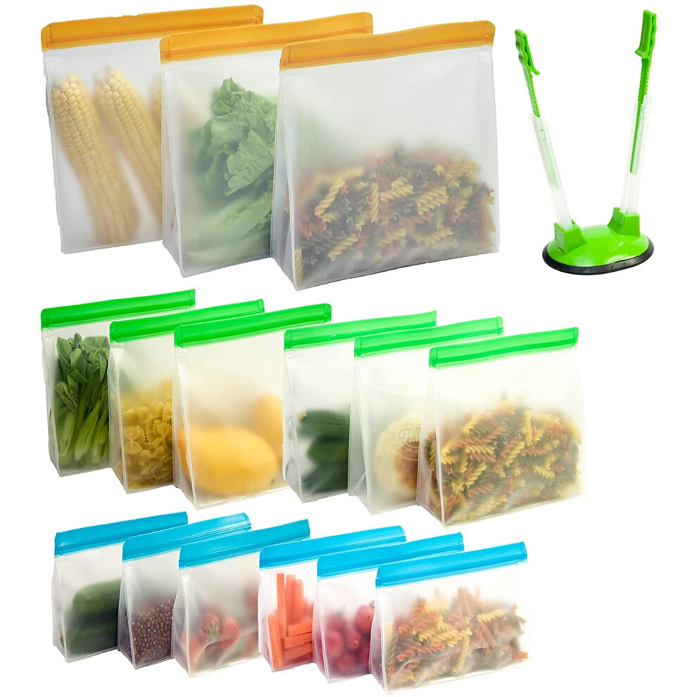 Stand Up Reusable Food Storage Bags,15 Pack Reusable Freezer Lunch Bags Gallon Bags Sandwich Bags Leakproof Reusable Bags (3 Large Bags+6 Sandwich Bag
