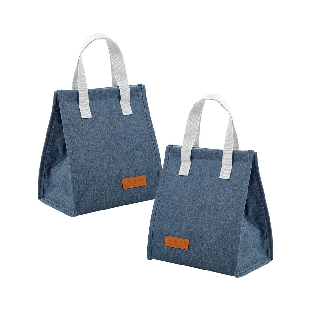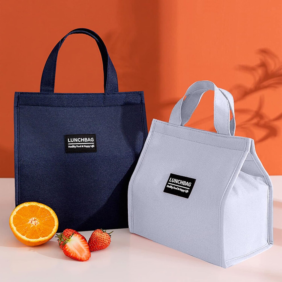 Pack of 2 Lunch Bags, Cool Bag, Portable Insulated Lunch Bag, Waterproof Foldable Picnic Bag, Lunch Bag for Work (Grey + Blue)