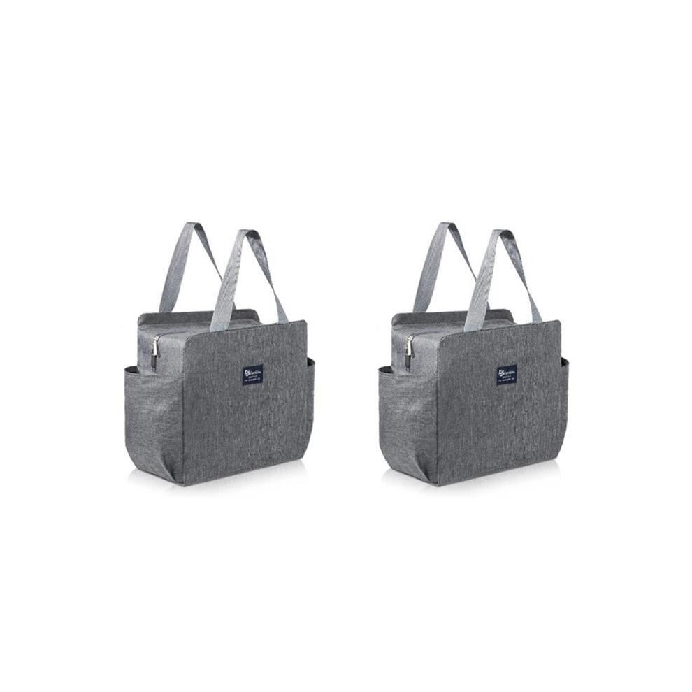 2 Pack Insulated Lunch Bags for Office, Cooler Lunch Bag, Picnic Carry Bag, Waterproof Canvas, Grey