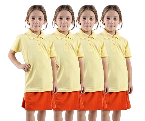GW CLASSY OUTFIT Girls Polo Shirts (Pack of 4) Half Sleeves School Uniform Polo Kids T-Shirts School Uniform PE Tops (4-13 Years) (6-7 Years, 4X Yellow Polo)