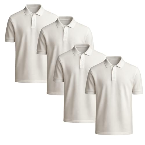 STREETWISE CLOTHING QUALITY CASUAL WEAR Pack of 4 Kids School Polo Shirts - Boys and Girls Short Sleeve 100% Cotton Plain Polo Neck T Shirt Ideal for PE and School Uniform White