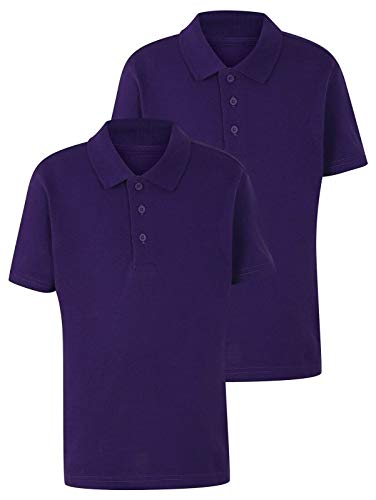 TurnHint® Pack of 2 Boys Cotton Polo T-Shirts, Kids Plain Back to School Classic Summer Short Sleeve Shirt Tee Tops (Purple, 9-10 Years)