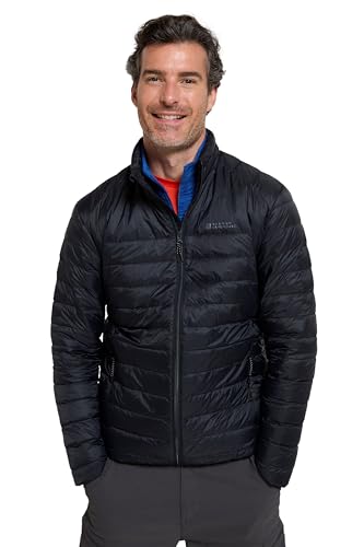 Mountain Warehouse Featherweight Mens Down Jacket - Lightweight Winter Puffer Coat, Easy Care, Packaway Bag, Water Resistant - For Camping, Travelling & Walking Black M