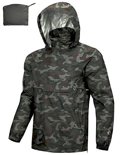 Outdoor Ventures Rain Jacket for Men Waterproof Pullover Lightweight Hooded Windbreaker Outdoor Raincoat Packaway Breathable Windproof Jacket for Travelling, Camping, Hiking Forest Camouflage L